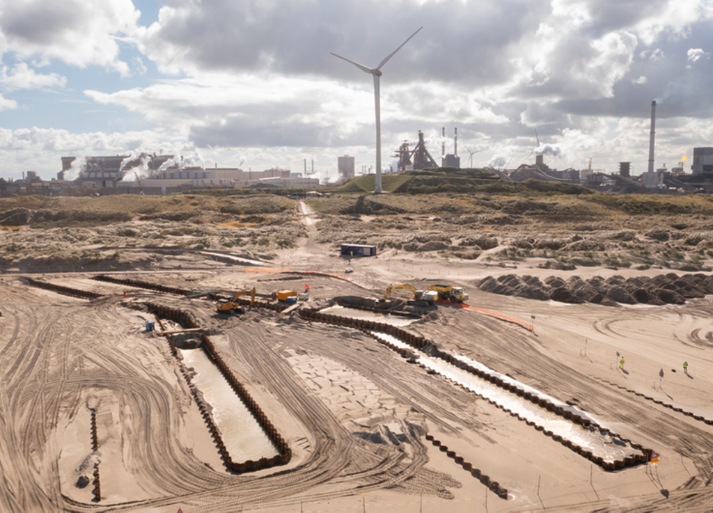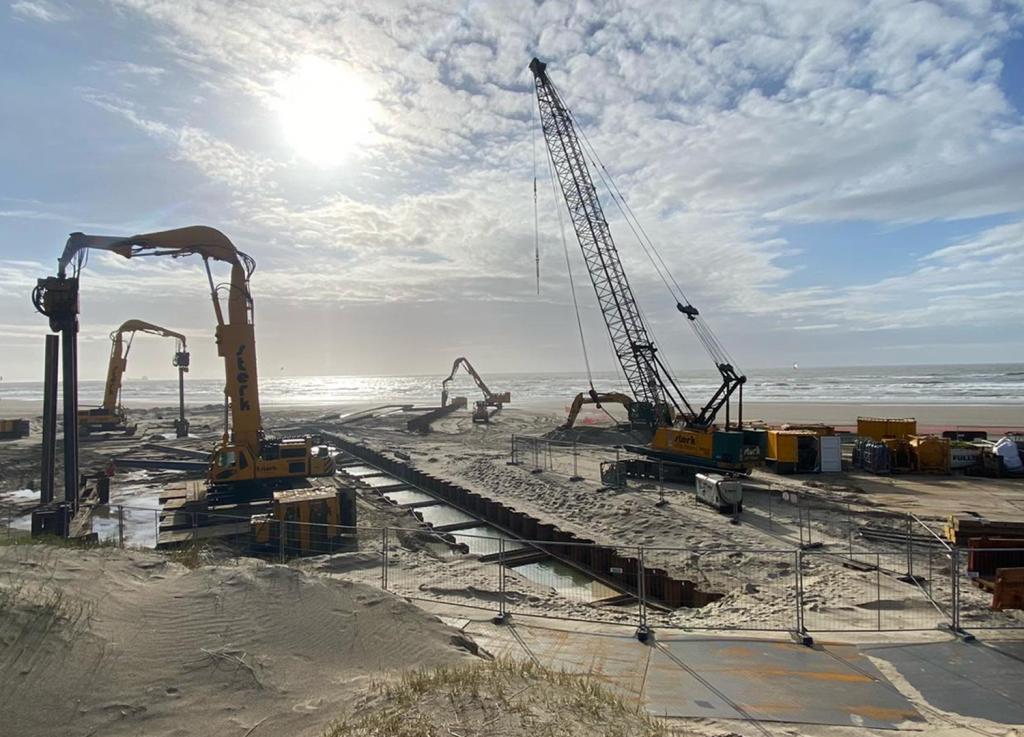 Voor het windparkproject Hollandse Kust West Beta werkte Sterk in opdracht van Boskalis Subsea Cables B.V. aan de realisatie van twee cofferdammen op het strand nabij Velsen-Noord. De cofferdammen waren noodzakelijk voor het veilig intrekken en installeren van de energietransportkabels vanaf zee richting het hoogspanningsstation in Velsen. Het project vond plaats in een dynamische kustomgeving, met invloed van getijden, nabijgelegen duinen en toeristisch gebruik van het strand.