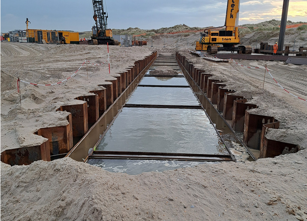 Sterk verzorgde de engineering en uitvoering van het complete cofferdamtraject: van het aanbrengen en in stand houden van de damwanden tot het verwijderen na afronding van de kabelwerkzaamheden door Boskalis. Over een totale lengte van circa 660 meter zijn damwanden aangebracht met lengtes tot 20 meter, inclusief tijdelijke stempelramen en verankeringen.